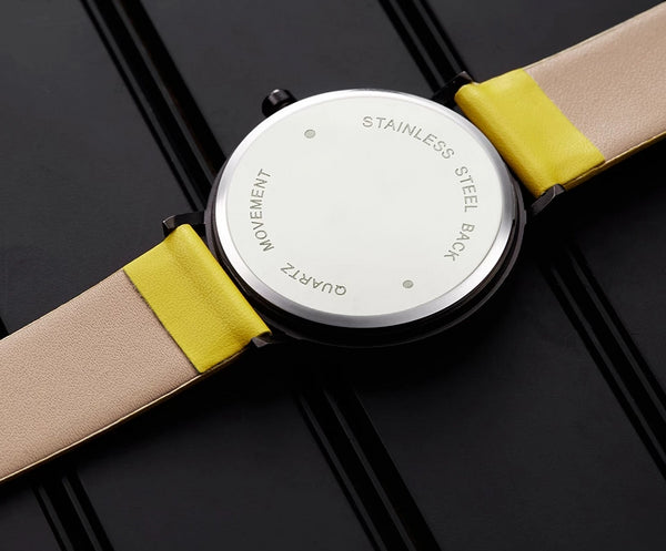 Get a refined finish. This polished, minimal timepiece has a unique design watch case featuring tonal hands Buckle on the understated leather strap and dash out the door knowing you'll be both on time and on-trend.