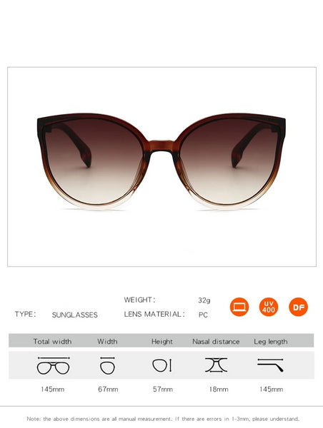 Style: Cat EyeGender: WomenFrame Material: PlasticLenses Optical Attribute: UV400Lenses Material: PolycarbonateLens Width: 67mmLens Height: 57mmFrame Feature: